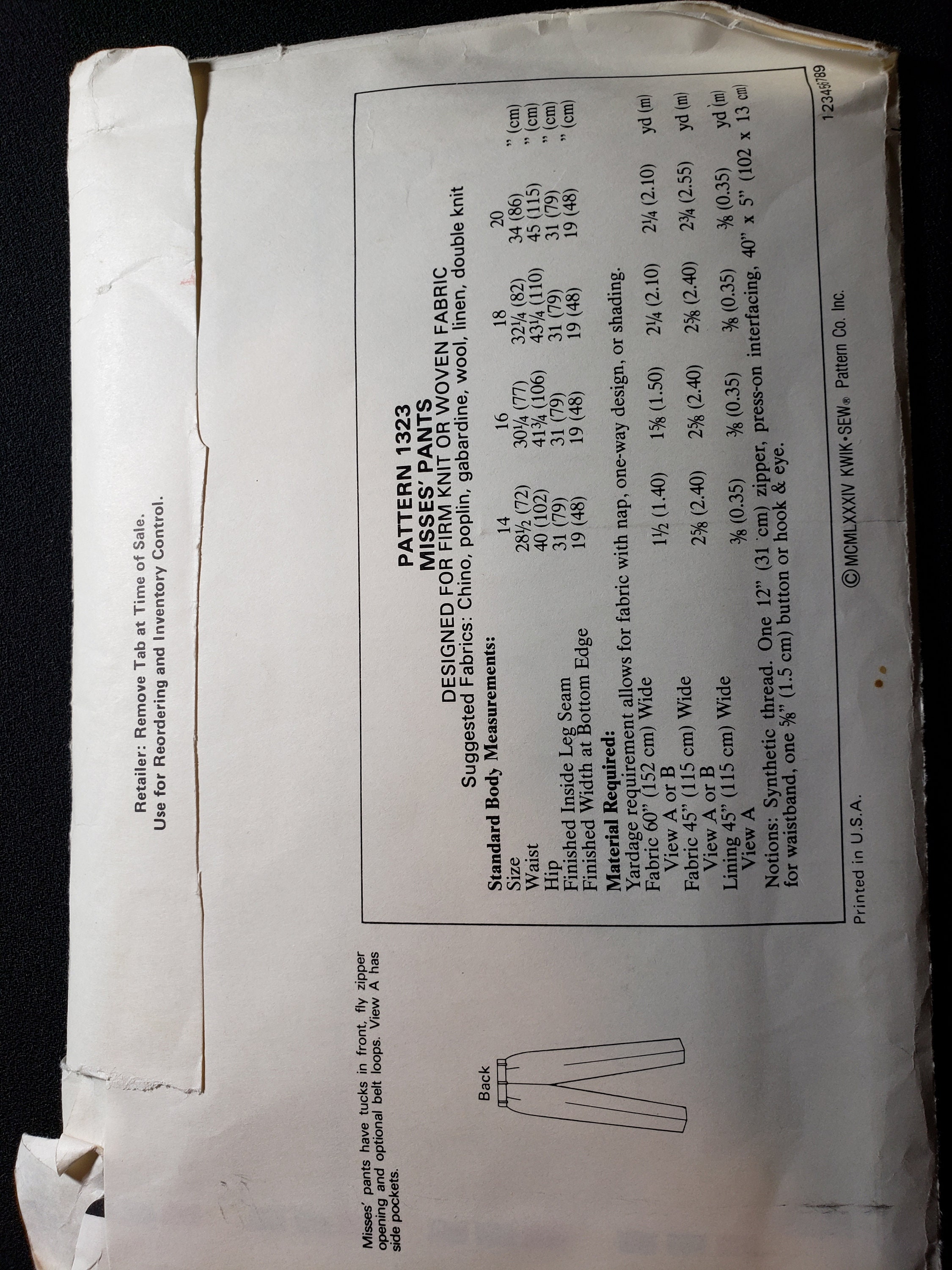 Kwik Sew 1323 Sewingg Pattern For Women S Pants With Etsy Canada